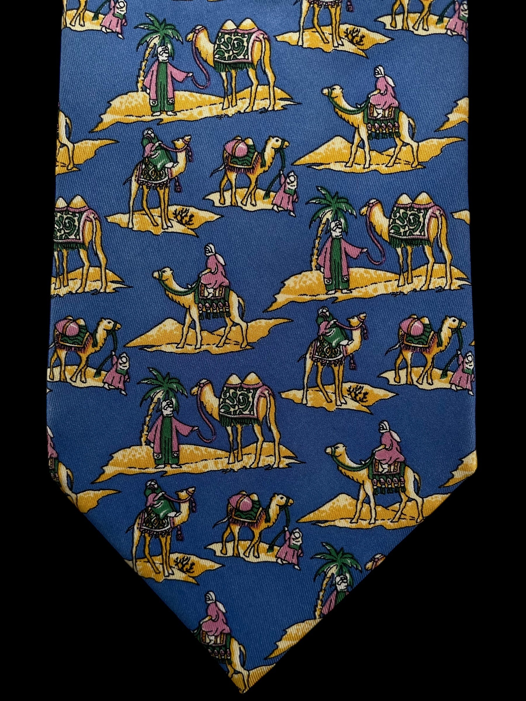 ALAIN FIGARET Vintage Blue Camels Silk Tie (9.2 cm by 148 cm) Normal Front Size.
