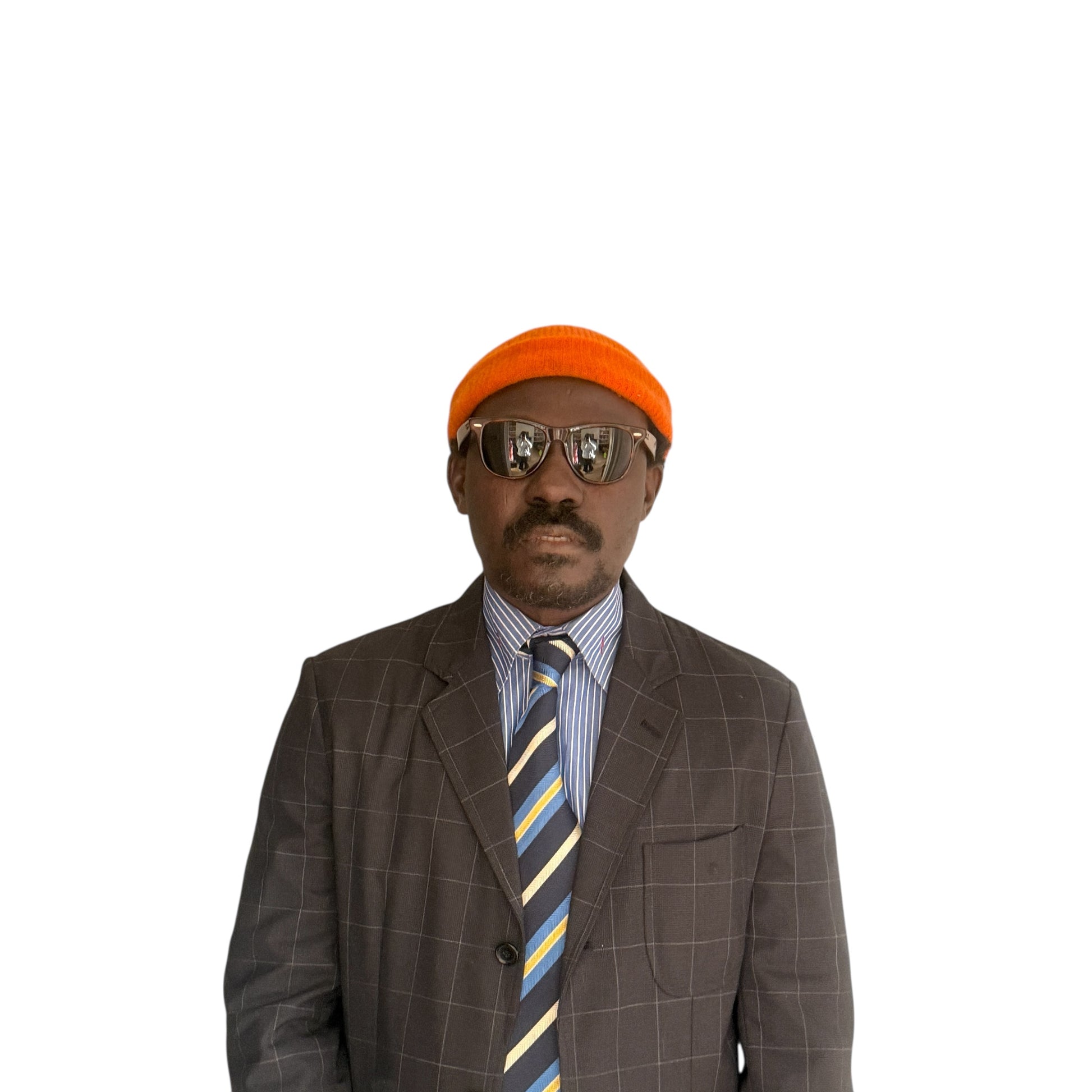 Vintage silk tie BREUER: navy blue with electric blue, white, and yellow stripes pattern.