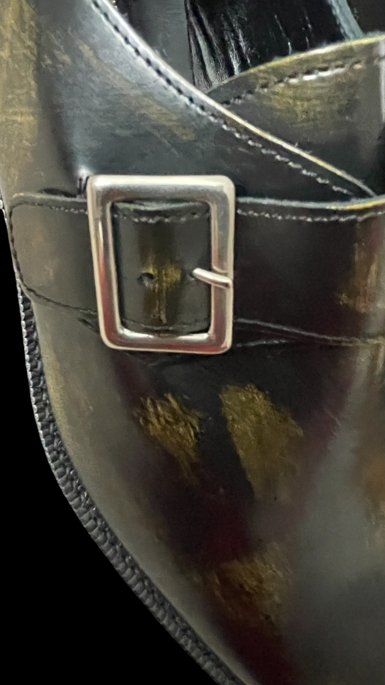 CdG Homme Plus Men’s Black Olive Green Leather Buckle Shoes (Japan Men’s Size 26) U.K. 7