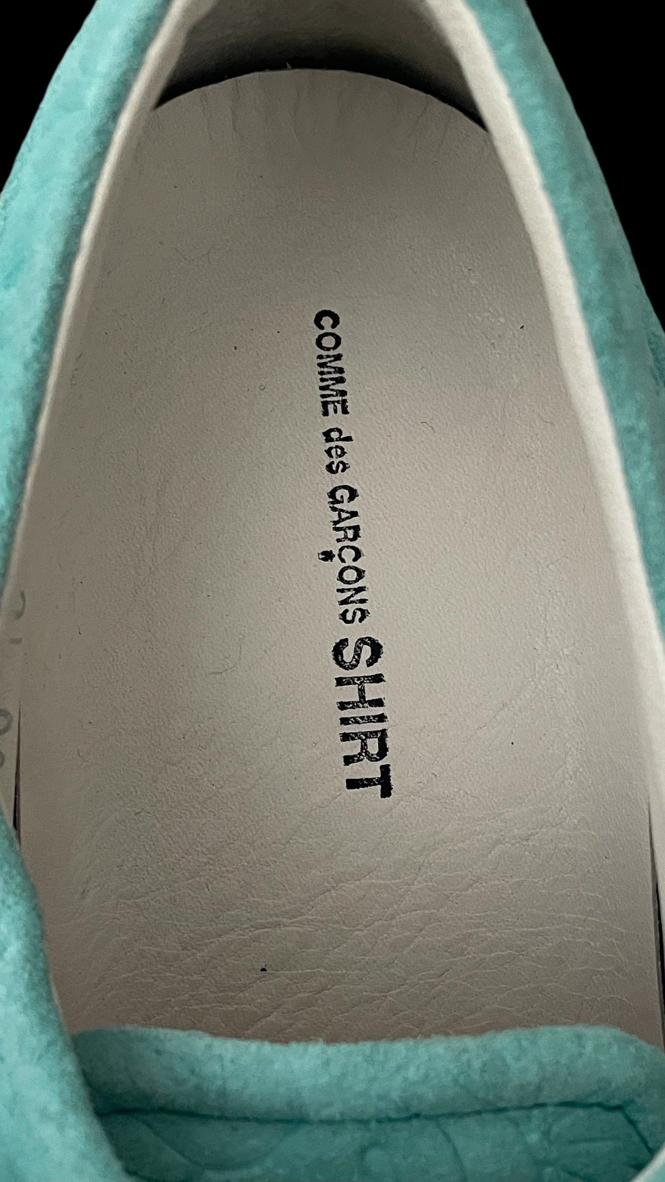 CdG SHIRT Men’s Light Turquoise Suede Abstract Sneakers (U.K. Size10)