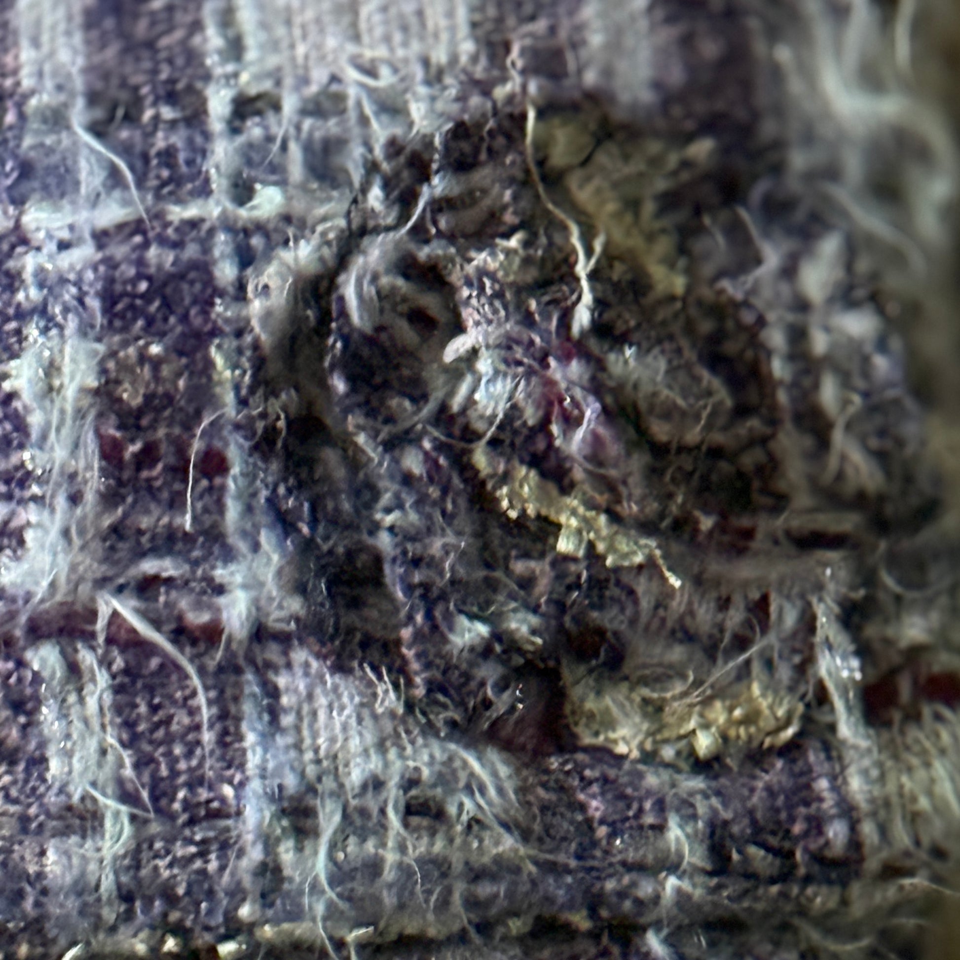 . Front flap with stitched tweed flower (inside small chain fully trimmed)