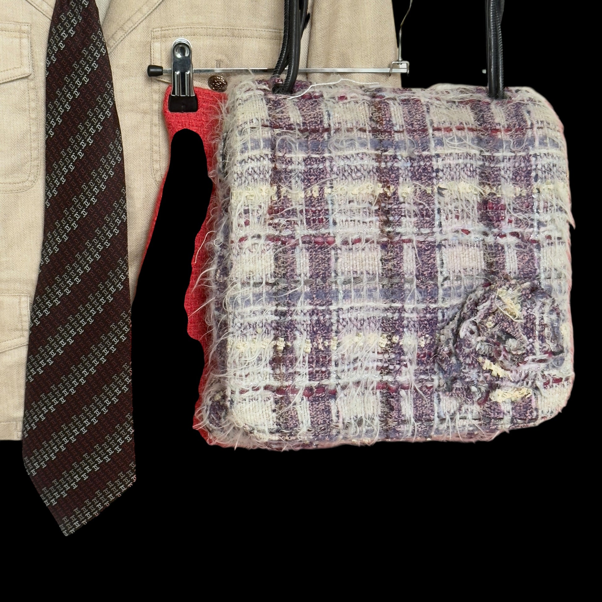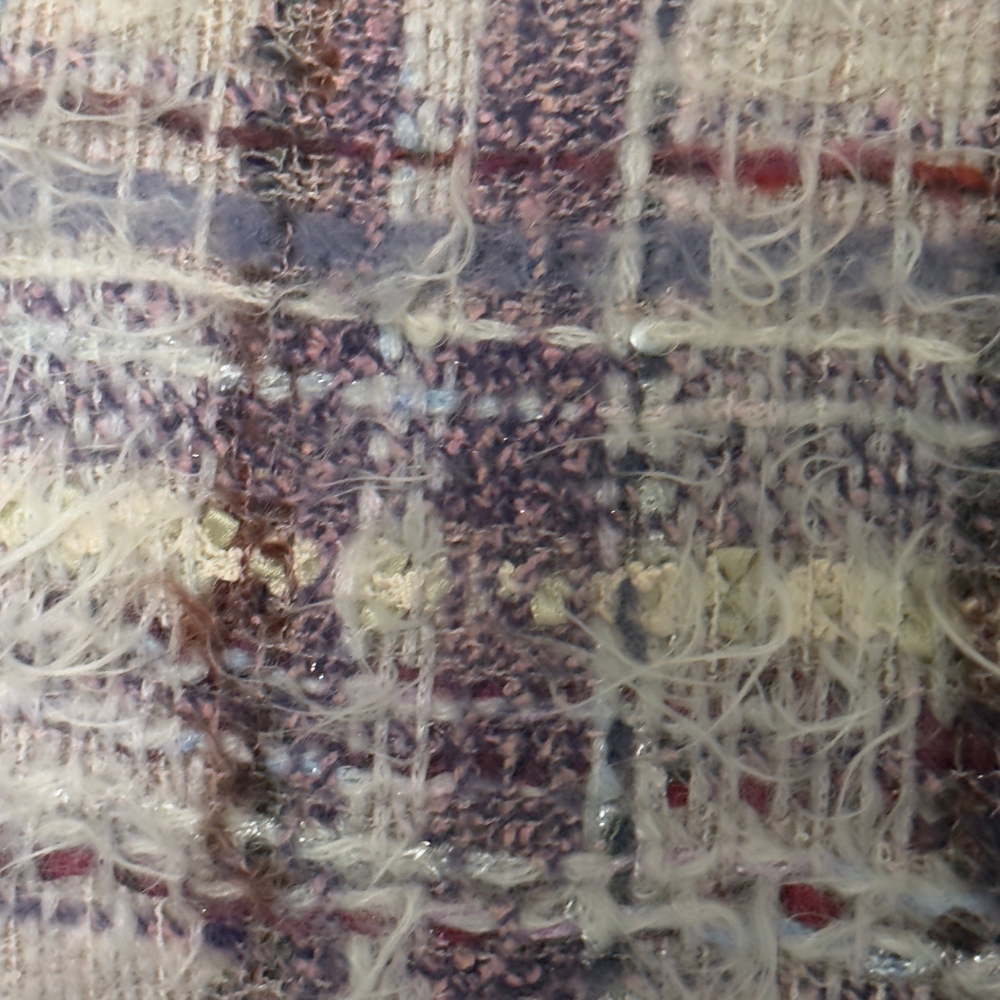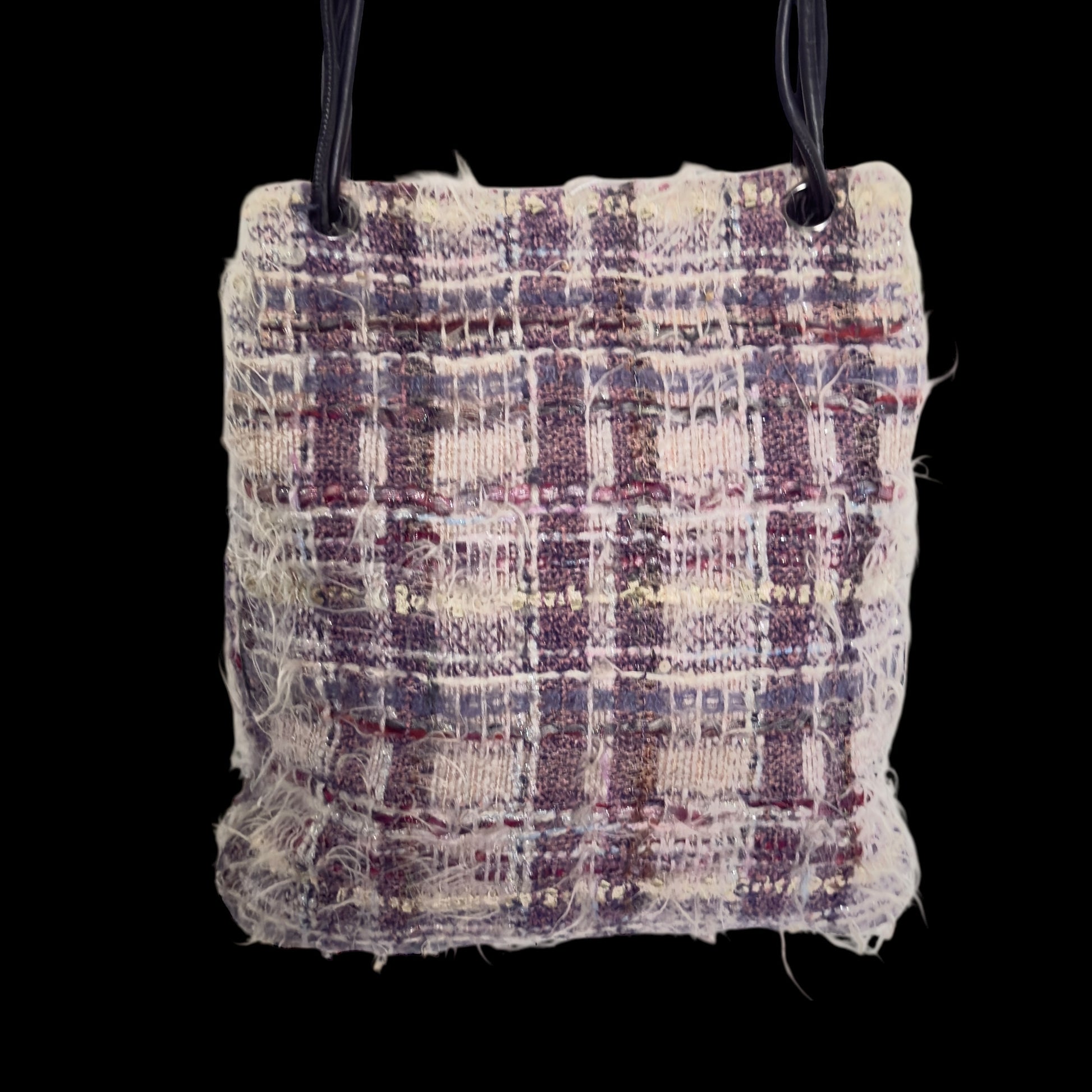 CHANEL tweed shoulder bag: off white with purple, dark purple, red, pink, and silver