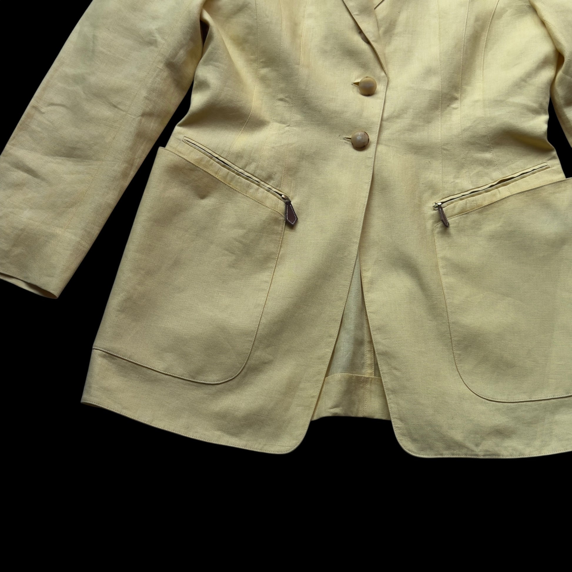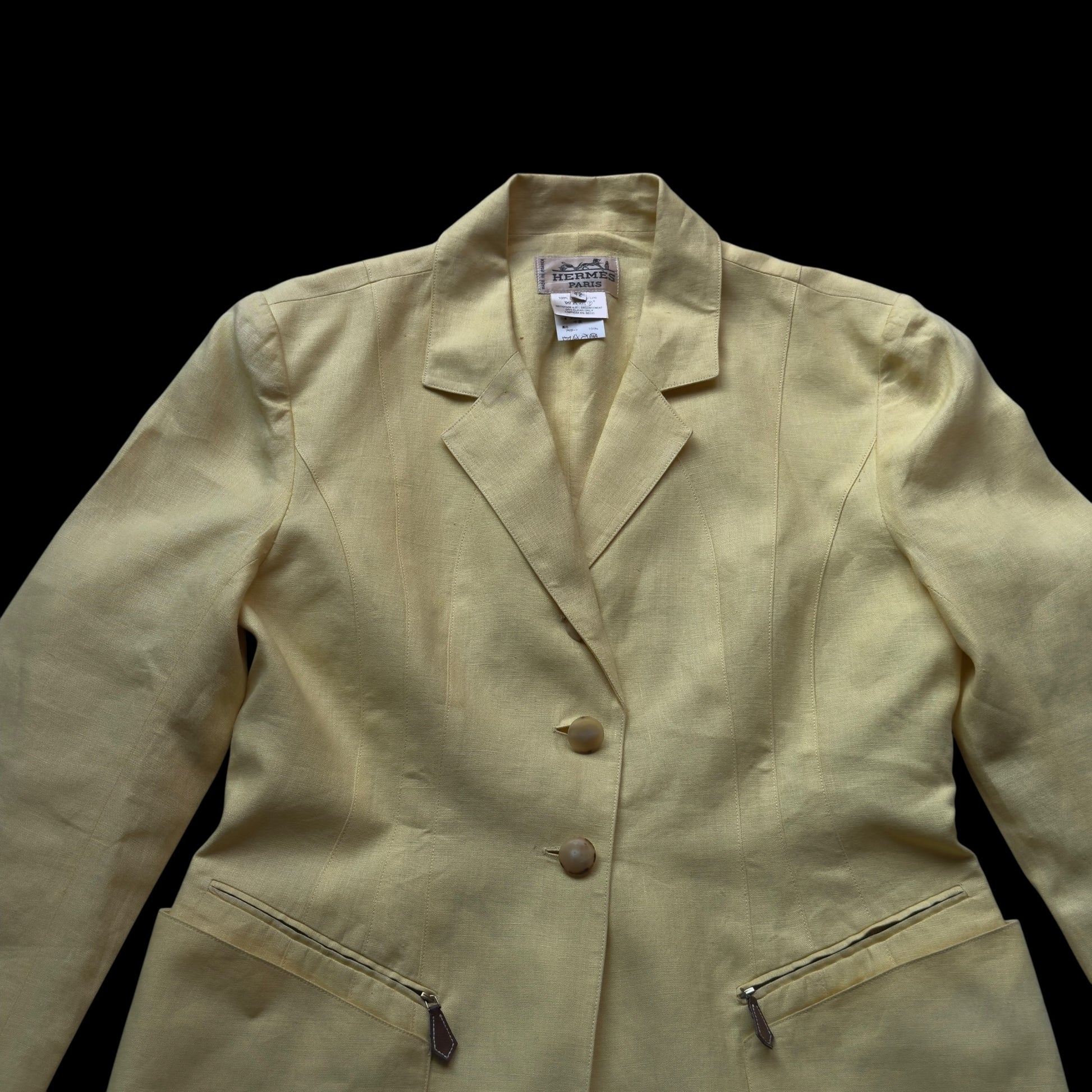 HERMES Vintage Yellow Linen Jacket. Size 42 (Small/Medium slim fit).