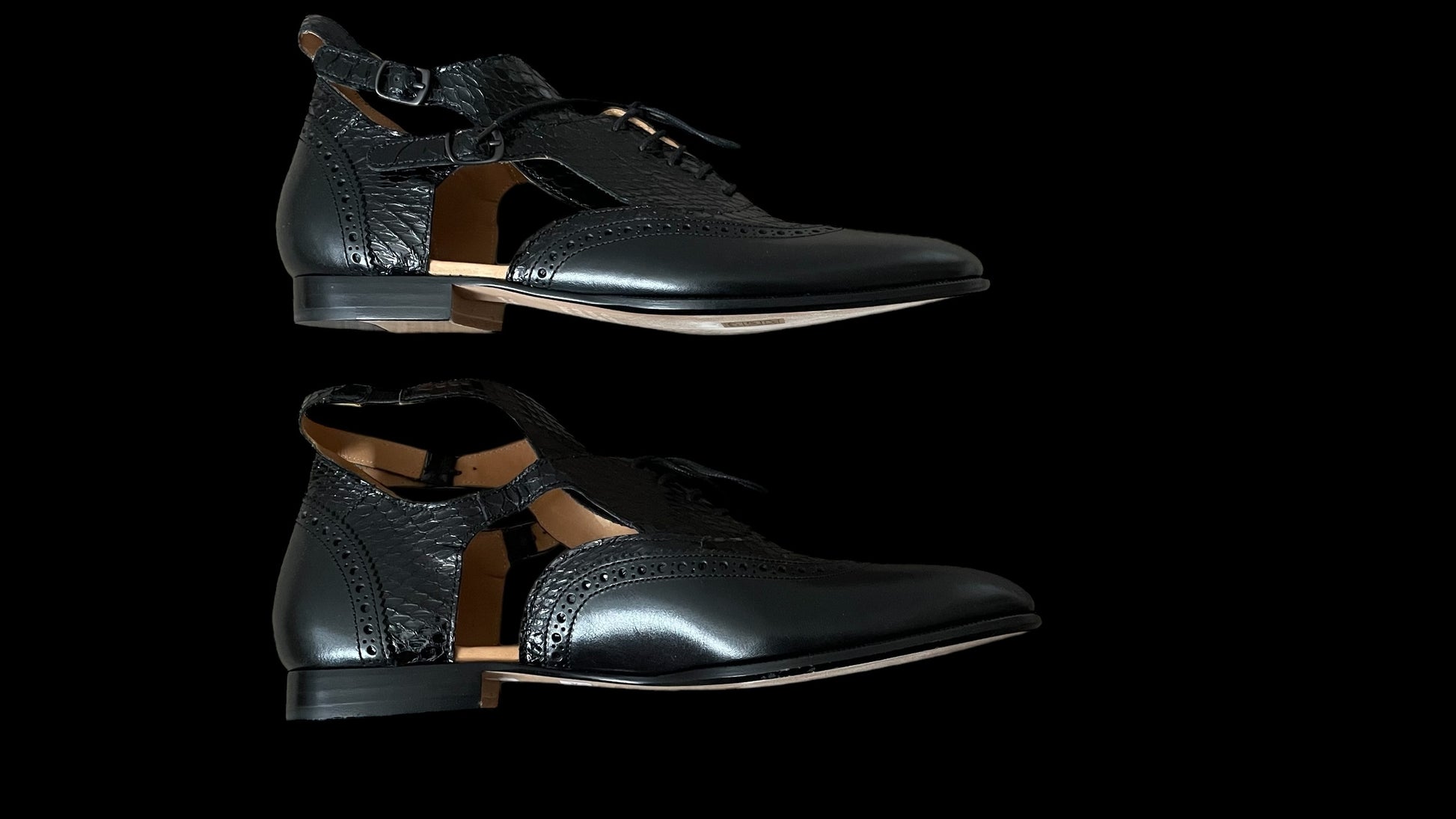 MAISON MARGIELA Women’s Black Leather Lace-Up Open Shoes (Euro Size 41) U.K. 8