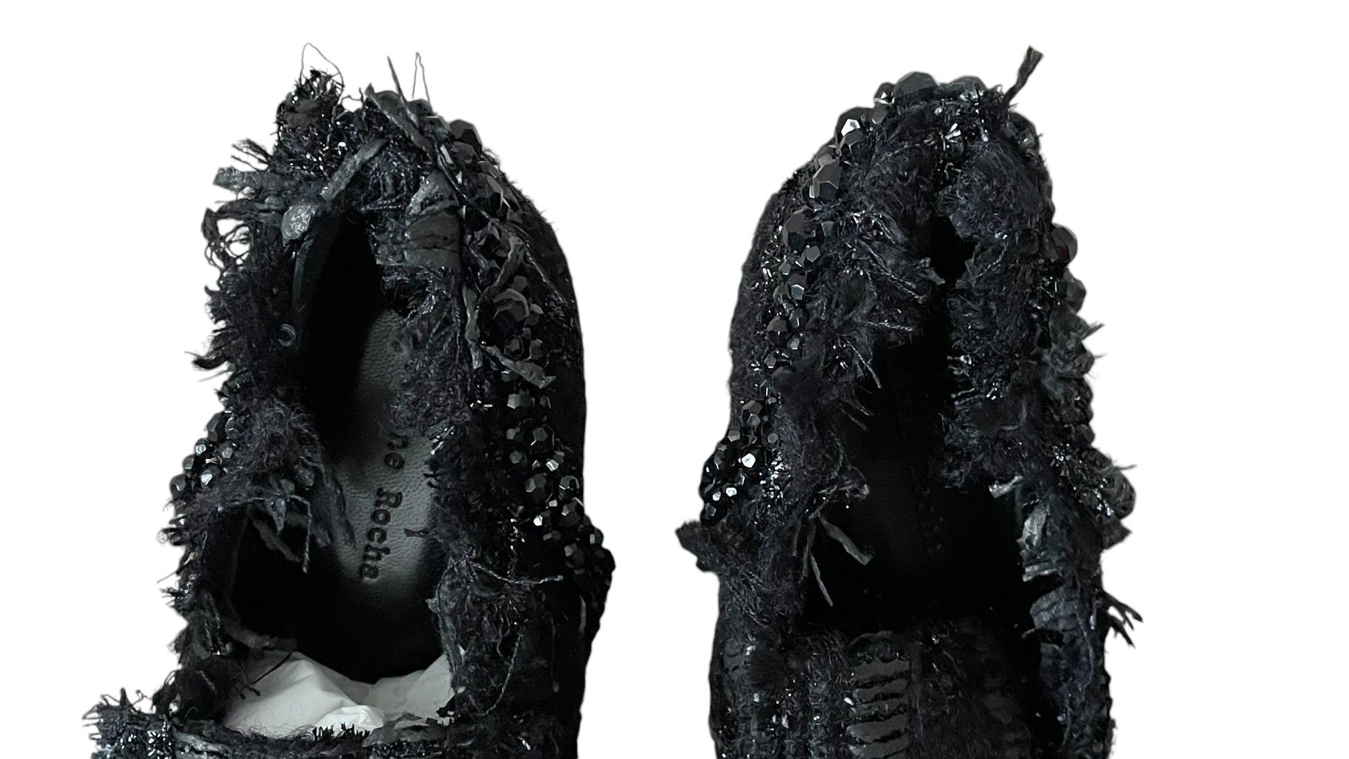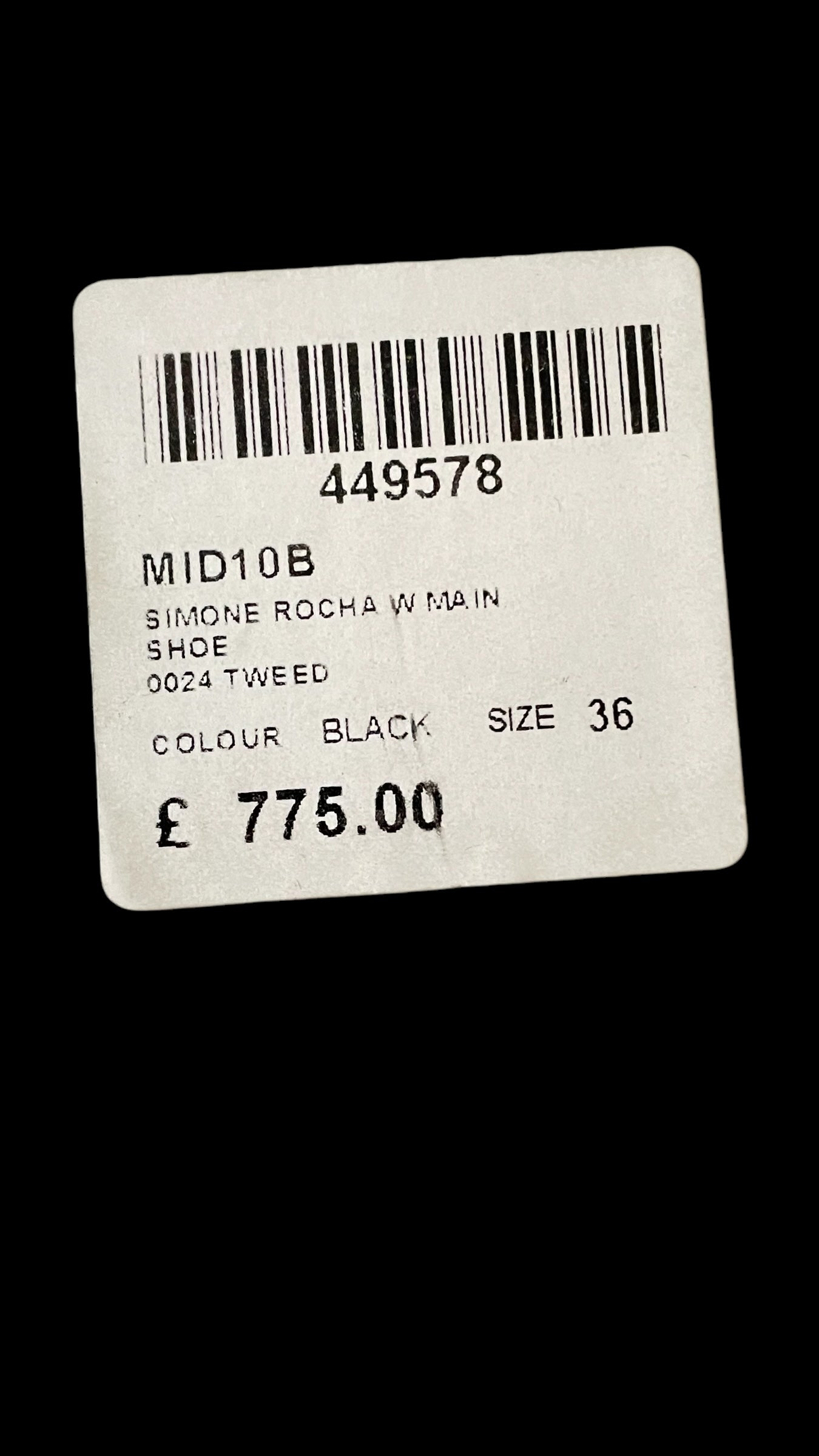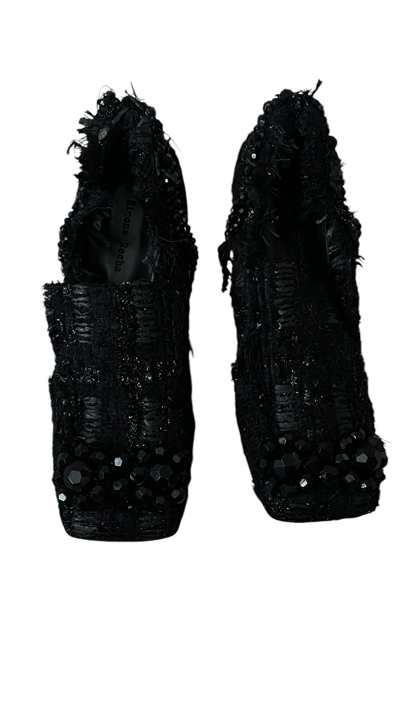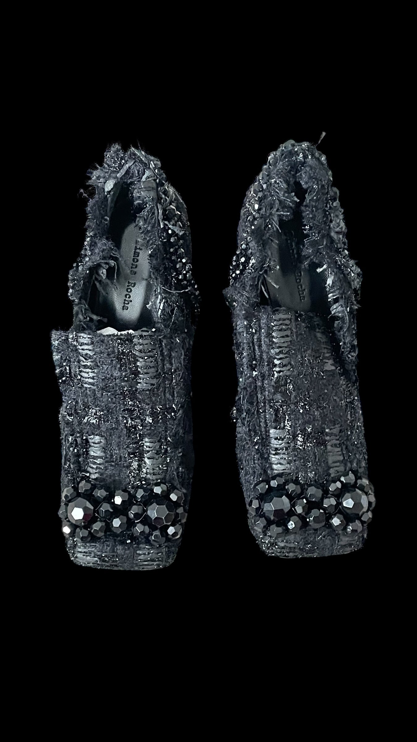 SIMONE ROCHA Women’s Black Embellished Tweed Block-Heel Shoes (Euro Size 36) U.K. 3.5