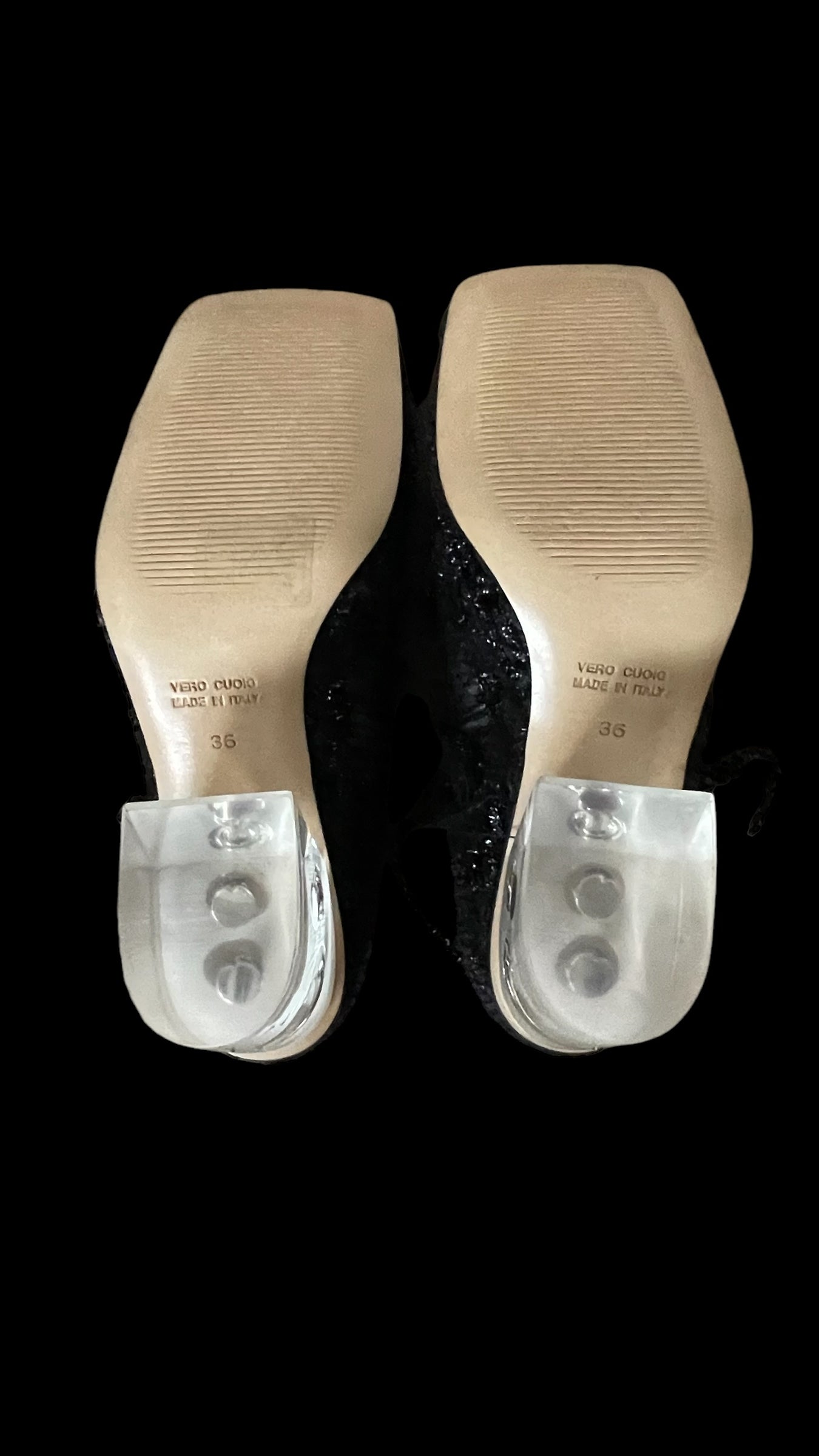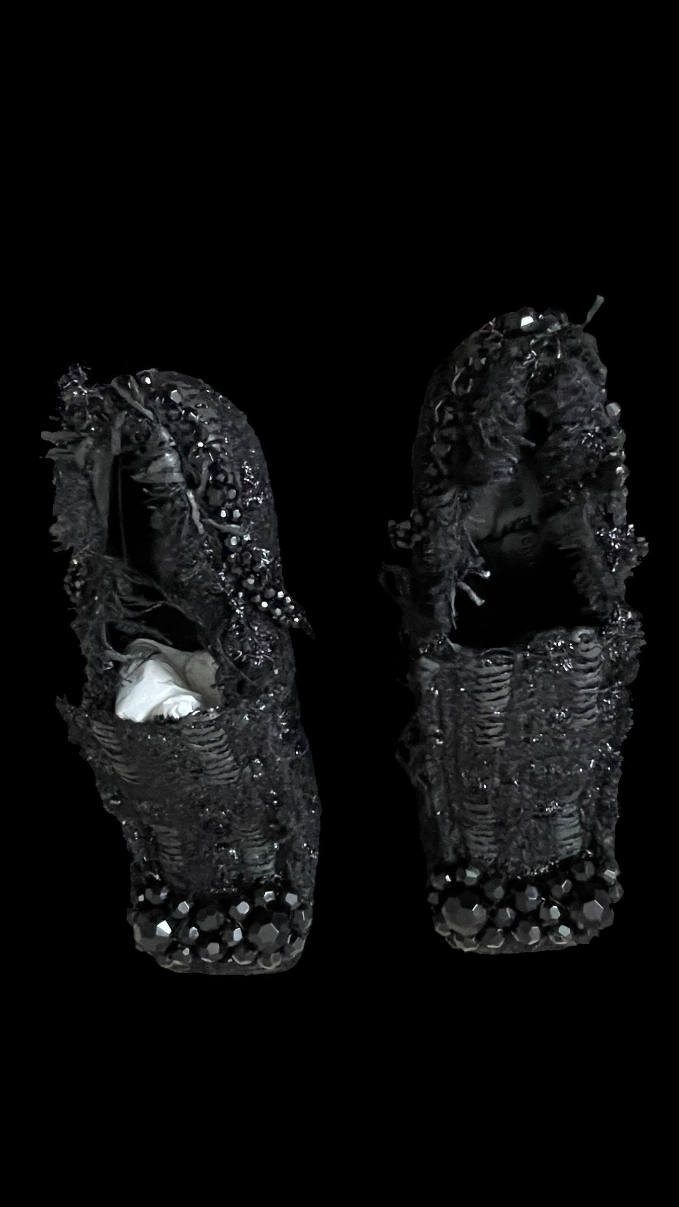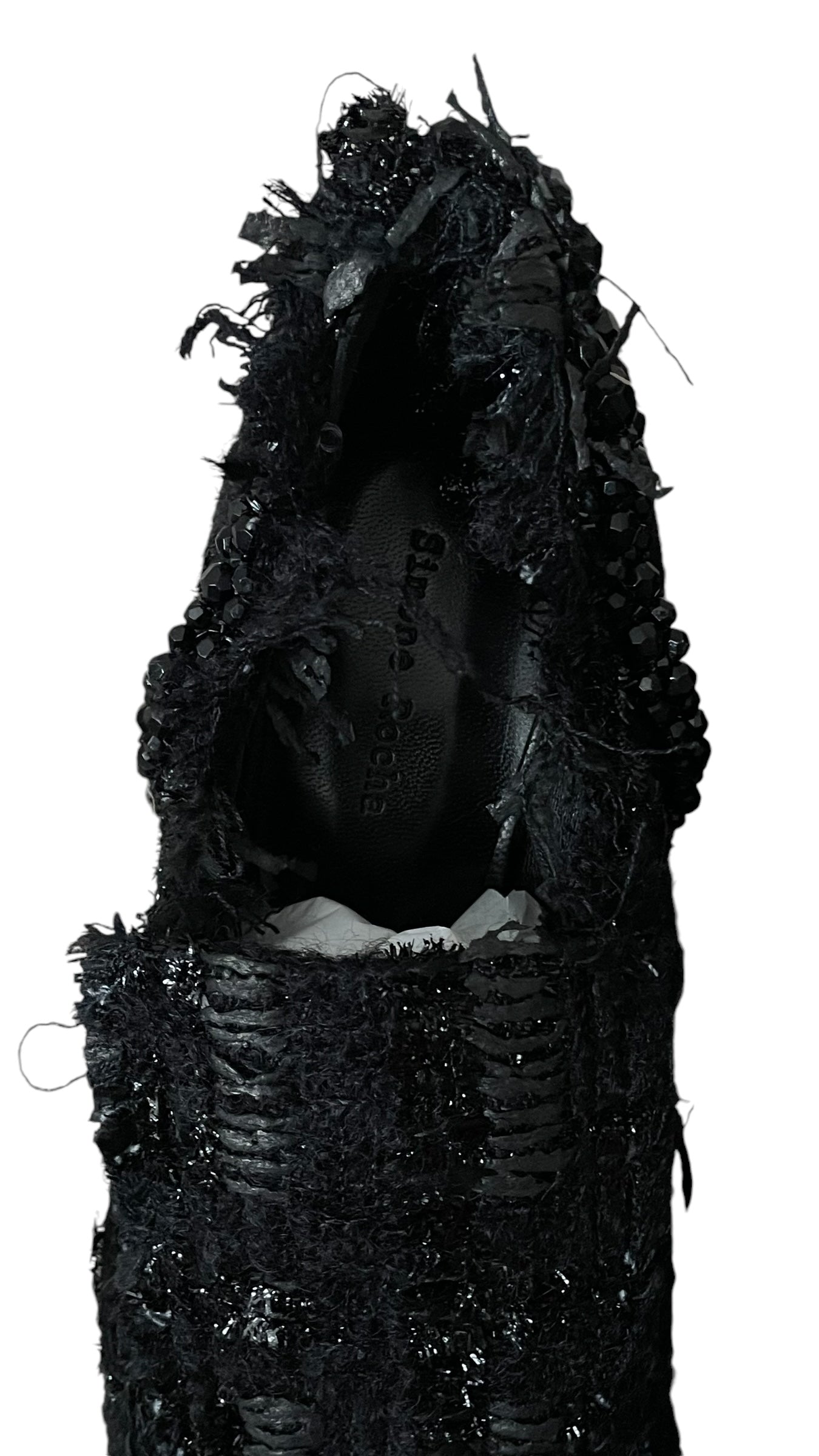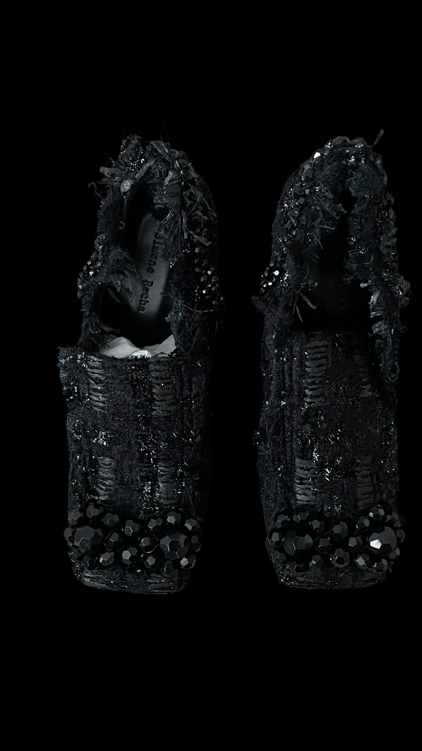 SIMONE ROCHA Women’s Black Embellished Tweed Block-Heel Shoes (Euro Size 36) U.K. 3.5